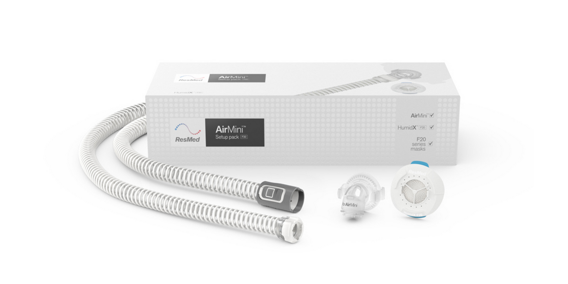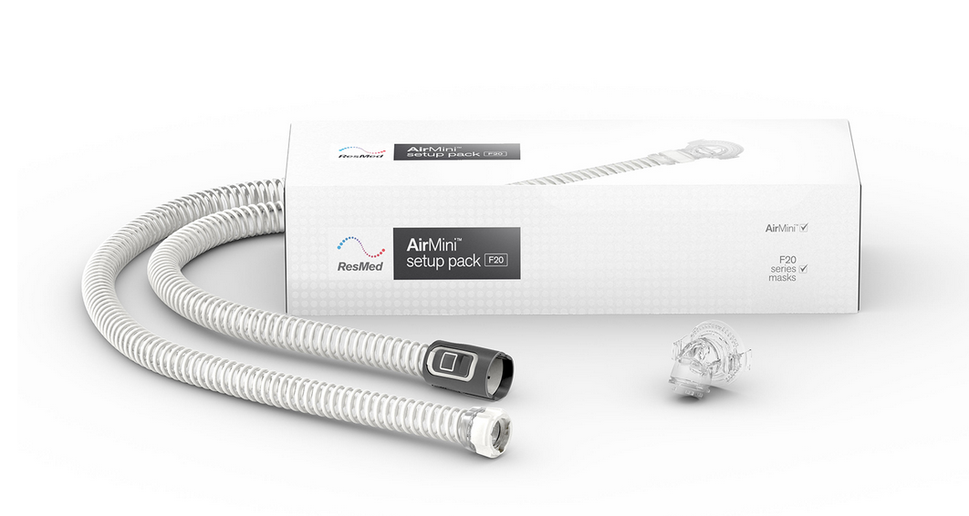 AirMini™ Zestaw startowy do maski twarzowej AirFit™ F20 to oryginalny zestaw akcesoriów firmy ResMed, przeznaczony do podłączenia maski pełnotwarzowej AirFit™ F20 z kompaktowym aparatem CPAP AirMini™. Zestaw umożliwia szybkie i wygodne rozpoczęcie terapii bezdechu sennego z wykorzystaniem najmniejszego na świecie aparatu CPAP.